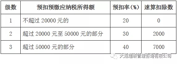 实务中,很多人第一反应是选择30%的预扣率,理由是王某取得劳务报酬收入22000元已经超过了20000元,这种观点错误的原因在于将“收入额”等同于“收入”。 根据《国家税务总局关于全面实施新个人所得税法若干征管衔接问题的公告》(国家税务总局公告2018年第56号)第一条第(二)项规定: 扣缴义务人向居民个人支付劳务报酬所得、稿酬所得、特许权使用费所得,按次或者按月预扣预缴个人所得税。 具体预扣预缴方法如下: ➽劳务报酬所得、稿酬所得、特许权使用费所得以收入减除费用后的余额为收入额。 其中,稿酬所得的收入额减按百分之七十计算。 ➽减除费用:劳务报酬所得、稿酬所得、特许权使用费所得每次收入不超过四千元的,减除费用按八百元计算;每次收入四千元以上的,减除费用按百分之二十计算。 ➽应纳税所得额:劳务报酬所得、稿酬所得、特许权使用费所得,以每次收入额为预扣预缴应纳税所得额。劳务报酬所得适用百分之二十至百分之四十的超额累进预扣率,稿酬所得、特许权使用费所得适用百分之二十的比例预扣率。 劳务报酬所得应预扣预缴税额=预扣预缴应纳税所得额×预扣率-速算扣除数稿酬所得 特许权使用费所得应预扣预缴税额=预扣预缴应纳税所得额×20% ✪本例中,王某取得劳务报酬收入是22000元,而经计算确认的收入额应为22000*(1-20%)=17600元<20000元,因此,应适用20%的预扣率。
