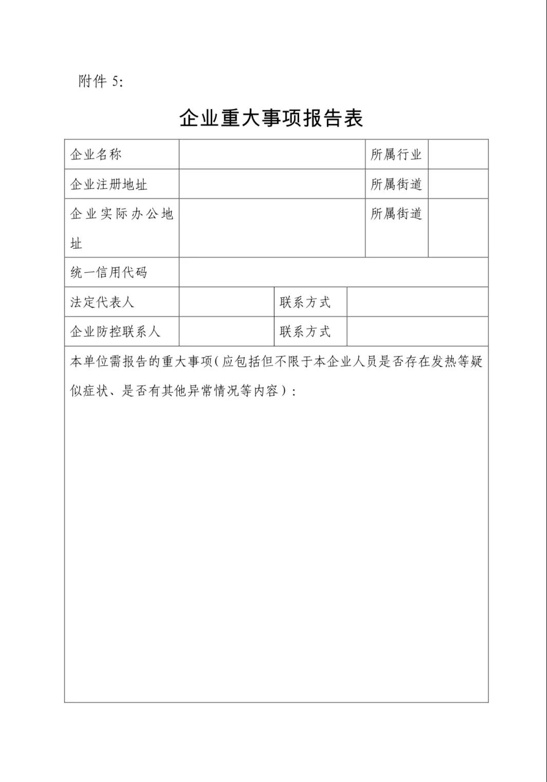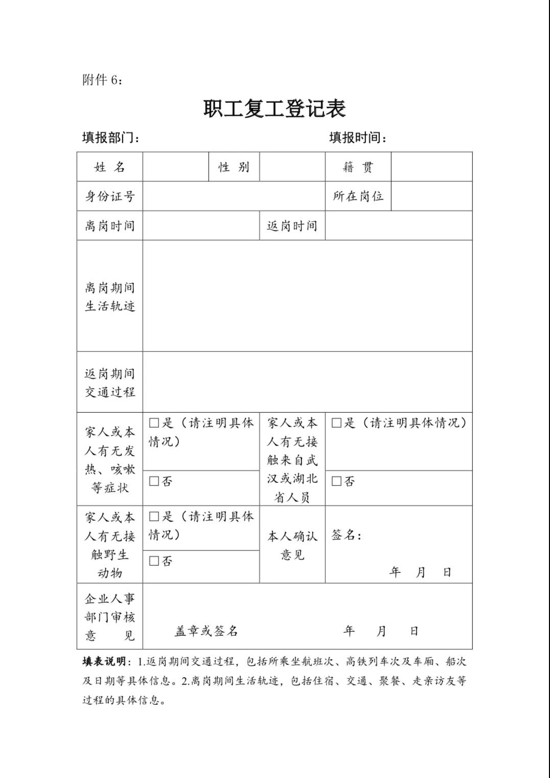 附 件 四 沙河口区复工企业疫情防控承诺书 ![]() ![]() ![]() 附 件 五 企业重大事项报告表 ![]() 附 件 六 职工复工登记表 ![]() 编辑:高大博